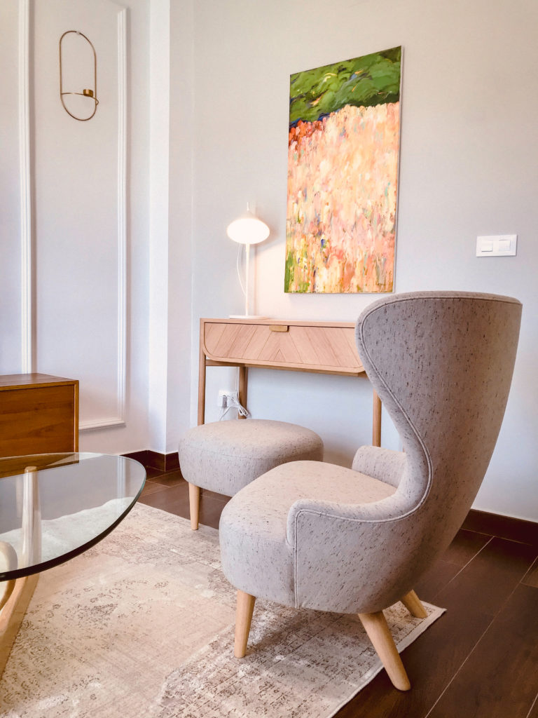 Es un reto trabajar en un proyecto donde la composición de los espacios esta encuadrada en un concepto tan amplio como el arte. A la elección de materiales y mobiliario le sumamos la selección de alguna pieza de algún artista actual.